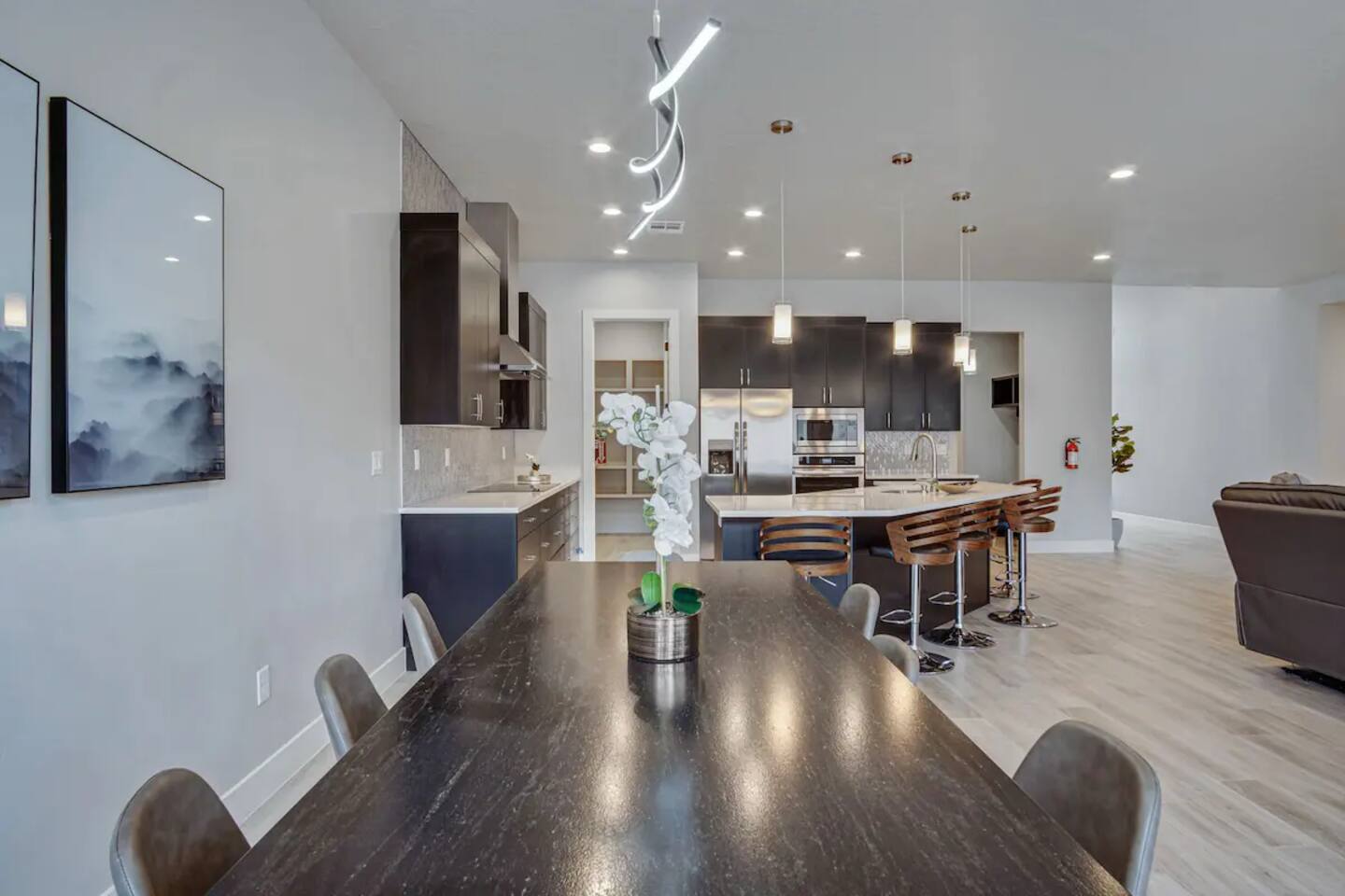 This cozy room features an ensuite bathroom, queen bed and TV. There is one additional guest room in the same hallway which may be booked separately. A bathroom in the hallway is reserved for this other guest room. You'll share common areas with your hosts, their dogs, 'Rue' and 'Mini Moo' and cat 'Spork' (if he's feeling social). In the main area there is a large sectional with USB charging throughout the couch. Large Smart TV, and open floor plan. The spacious kitchen has everything you need to cook with. With a laundry room off the kitchen.