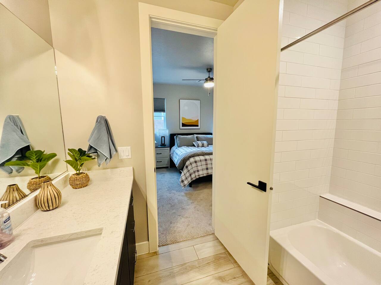 This cozy room features an ensuite bathroom (bathroom is attached to the room and only accessible through the private room), queen bed and TV in a beautiful modern home just minutes from adventure! Located right next to Sand Hollow Reservoir and Golf course.