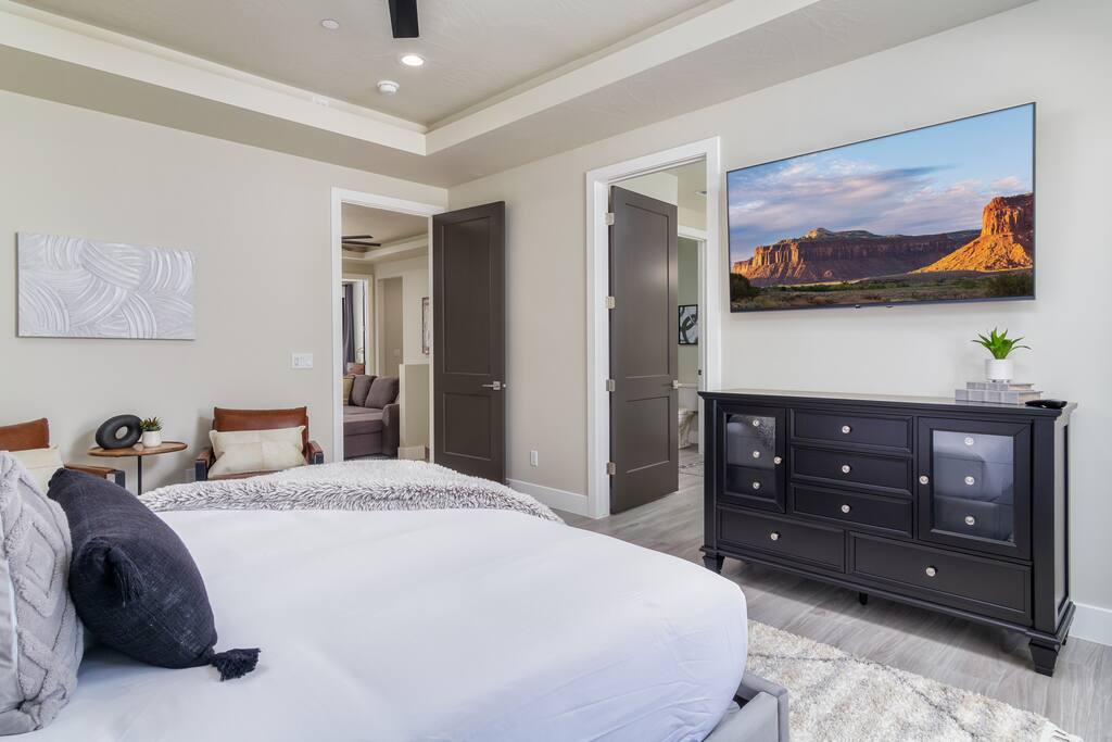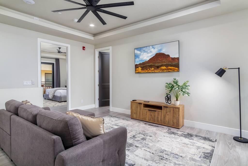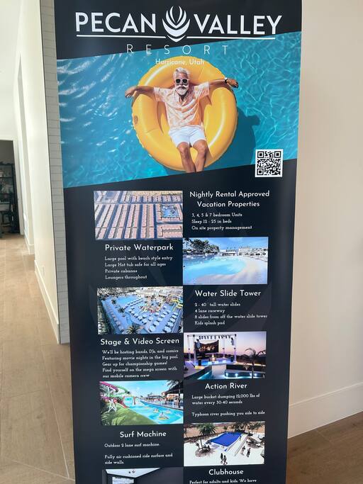 Escape to the breathtaking Pecan Valley Resort in Southern Utah, where this stunning 3-bedroom, 3.5-bathroom retreat awaits! Perfectly designed for families and groups, this spacious haven accommodates up to 12 guests in style. Take advantage of the "Beach House" which includes a DELUX water park, bar and restaurant- The entry fee for up to 12 people is included with your stay! It's normally $35 per person so this is a HUGE value! Inquire for current hours of operation.
