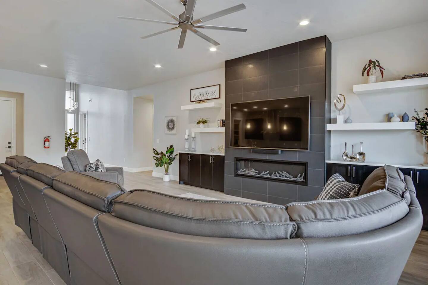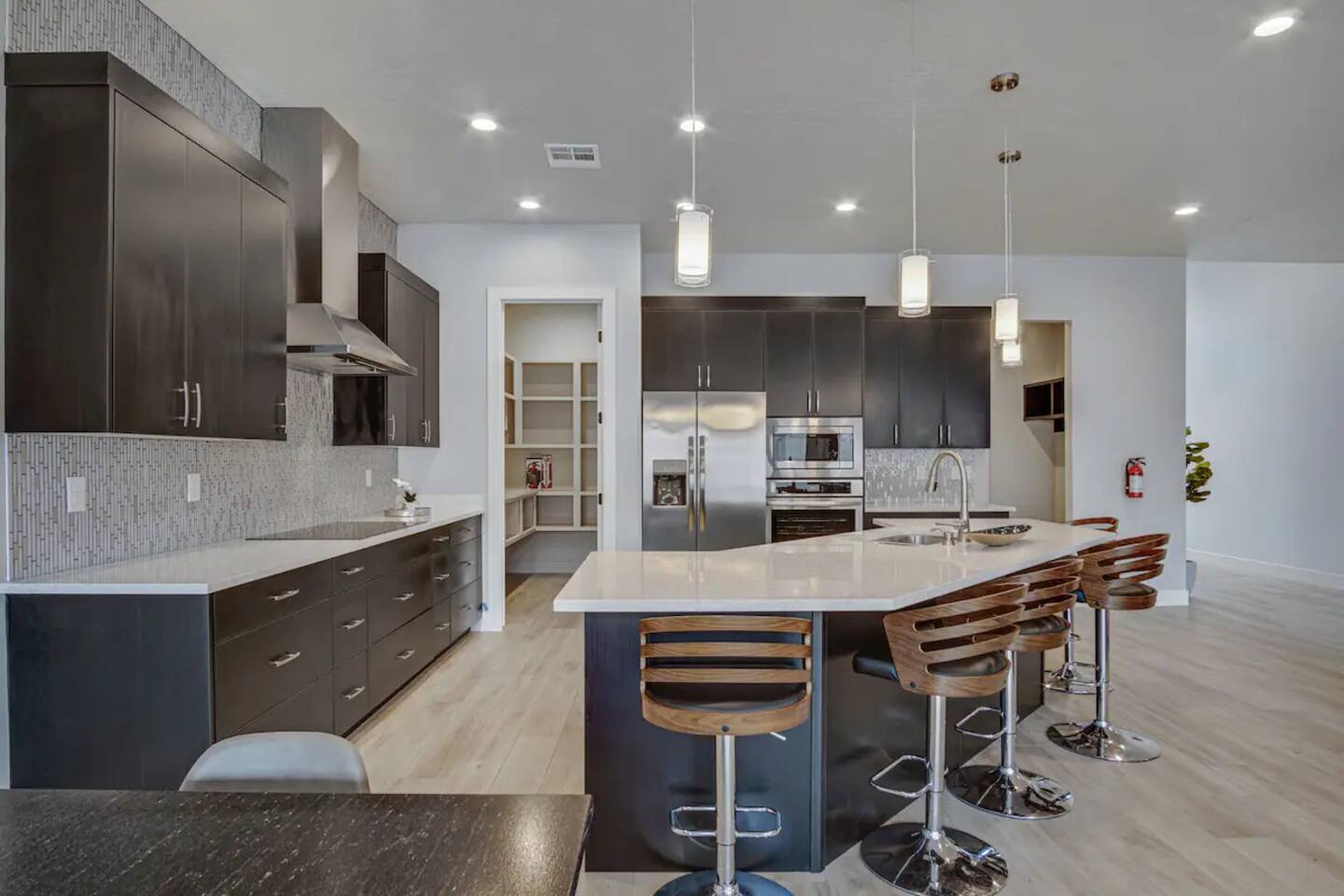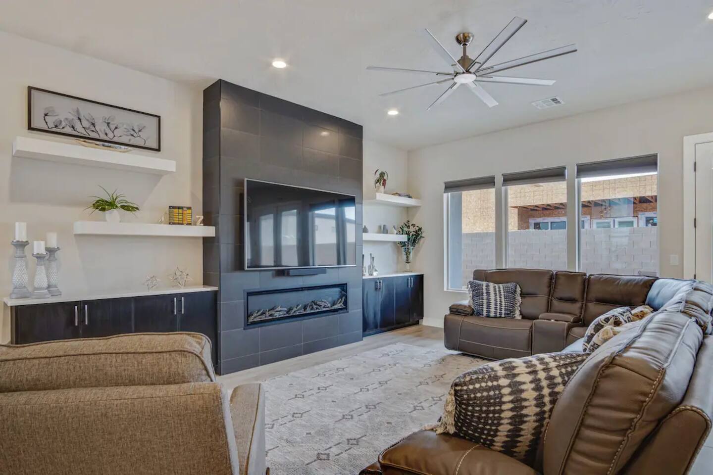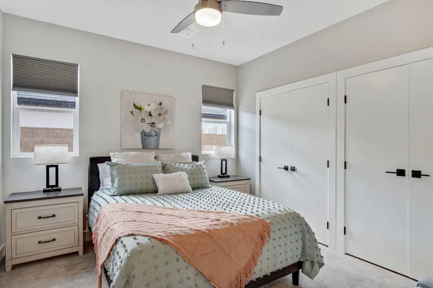 The space Whether your a group of golfers looking to enjoy Sand Hollow Golf course or a family or group looking for spacious accommodations look no further this is your home away from home. Your group will enjoy the private hot tub and pool, and open spacious accommodations. Minutes from adventure! The master bedroom has a king bed with a large 75 inch TV. With a door that walks out to your private hot tub. The master bedroom offers a private en-suite bathroom, and a double head walk-in shower and separated Tub with dual sinks and walk in closet. The second bedroom, offers a Queen bed with lots of closet space. Bedrooms 3 has a Queen bed and 55 inch TV private with a en-suite bath. The fourth bedroom is in the connected casita. This can be accessed within the home or its own private door outside. There is a large 55 inch TV, washer and dryer, full kitchen, ensuite bath and a King bed! In the main area there is a large sectional with USB charging throughout the couch. Large Smart TV, and open floor plan. The spacious kitchen has everything you need to cook with. With a laundry room off the kitchen. In total there are 2 sets of washer and dryers within the unit! Located in Pecan Valley Resort in Hurricane City, just off I-15, this resort is convenient off SR9, grocery shopping, movie theaters, golfing, Sand Hollow Reservoir and only 40 minutes away from Zion National Park! Want to experience some theatrics? No problem! With easy freeway access, Tuacahn Outdoor Amphitheater is just a short drive away! Relax in the quiet of the mountains without sacrificing quick city life access! The garage is not for guest use, guests may park in the driveway which has 4 regular length spaces and one extra long space. Come and explore this awesome new location in the St George area! Bedrooms: Master Bedroom: King Bed and Private Bathroom Second Bedroom: Queen Suite, Bathroom across the hall. Third Bedroom: Queen bed with Private Bathroom Fourth Bedroom: In Casita, offers a King Bed with Private Bathroom 4 Full Bathrooms Granite Countertops Stainless Steel Appliances Custom Cabinetry Coffee Maker Toaster Blender Electric Hand Mixer Mixing Bowls Dining Table - Seats (8) Kitchen Island - Seats (5) Outdoor Chairs - Seats (4) BBQ Grill Outside Main Level Living Room: Large TV Large Sectional Couch Extras: Two sets of Washer/ Dryer Unit - Laundry detergent provided. Iron & Ironing Board Extra Towels & Linens Broom + Dust Pan Mop Vacuum