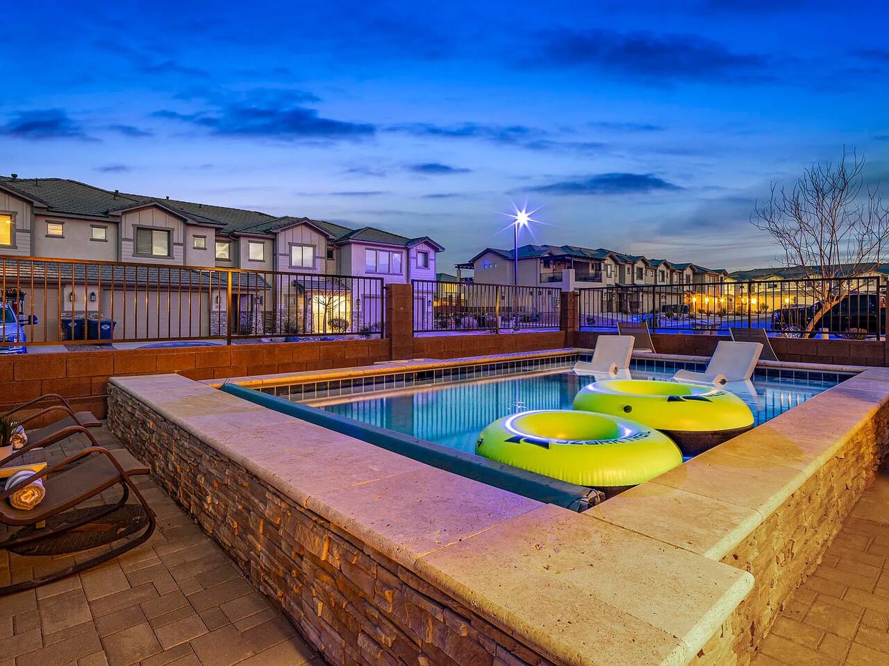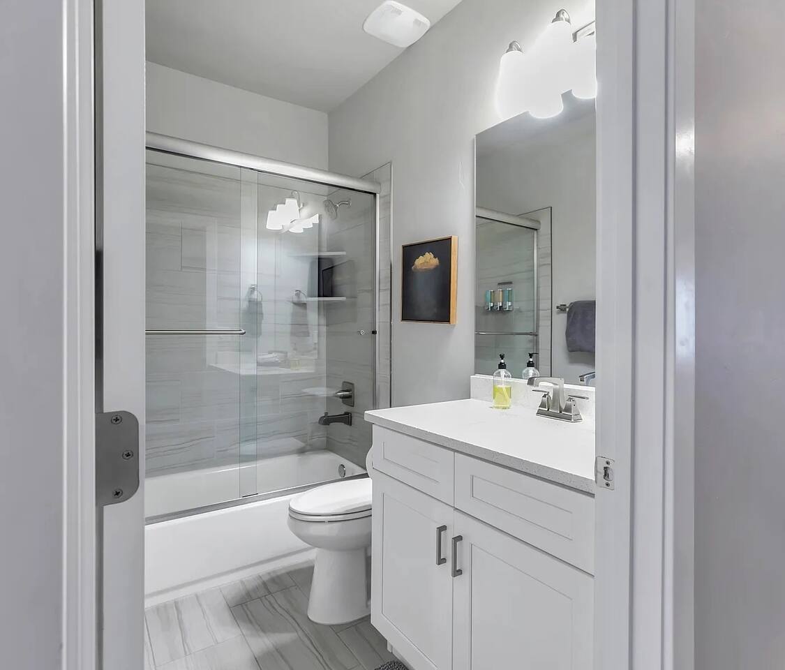 The space Bedding Arrangements: - Master Bedroom: King bed, TV, Ensuite bathroom - Second Bedroom: Queen bed, TV, Shared hallway bathroom - Third Bedroom: Queen bed, TV, Jack n Jill bathroom - Fourth Bedroom: 2 Queen beds, TV, Jack n Jill bathroom - Fifth Bedroom: King bed, TV, Ensuite bathroom - Sixth Bedroom: 4 double beds, TV, Ensuite bathroom Additional bedding: 1 Queen air mattress Amenities: - Private Pool - Xbox - Ping Pong table - 2 Pack n Plays - TV in every room - 2 car garage - EV charger (50amp outlet- bring cable) Guest access Amenities: Communal pools Splash pad Lazy river BBQ area Lounge with air hockey and foosball Exercise room Hot tubs